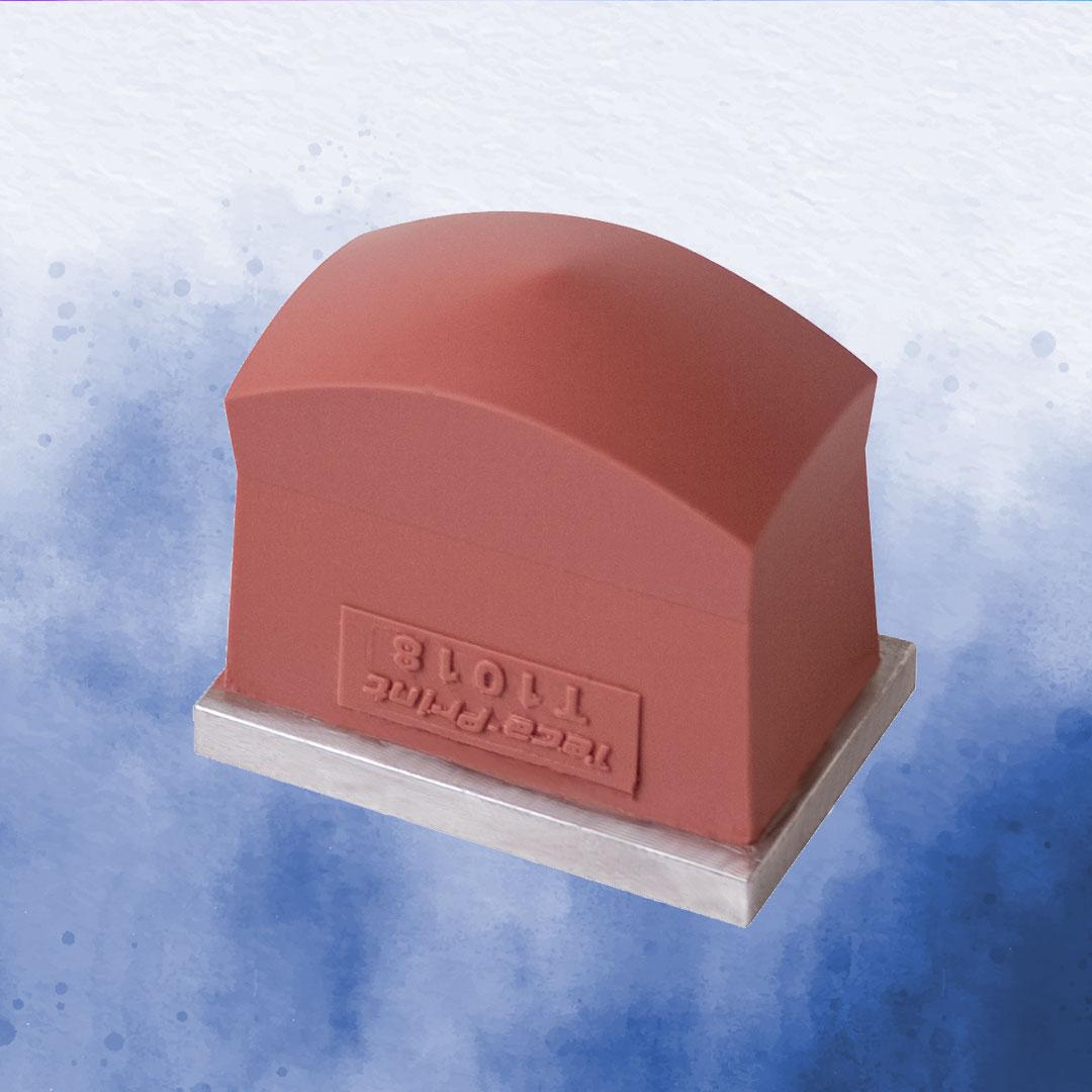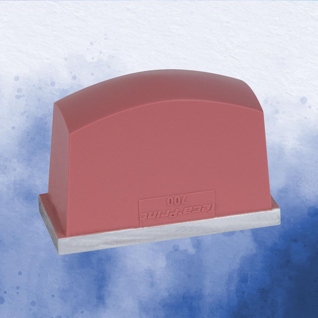 Cependant, les propriétés du silicone ne sont pas les seules à influencer le comportement de l’impression. La forme du tampon détermine également le résultat de l’impression, car elle détermine le comportement de roulement du tampon. Teca-Print vous propose plus de 2 000 formes de tampons différentes, et grâce à notre travail de développement constant et personnalisé, ce nombre ne cesse d’augmenter.